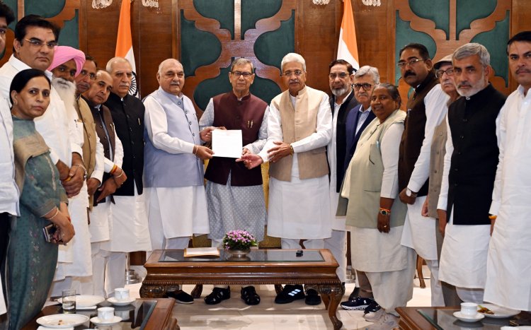 हुड्डा के नेतृत्व में राज्यपाल को सौंपा ज्ञापन, किसानों को प्रति एकड़ 60 हजार रुपये मुआवजे और धान खरीद घोटाले की जांच की मांग