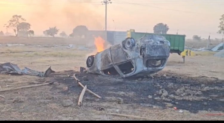 फैक्ट्री स्थल पर आगजनी के हवाले किए गये वाहन | फोटो: अमरपाल सिंह वर्मा